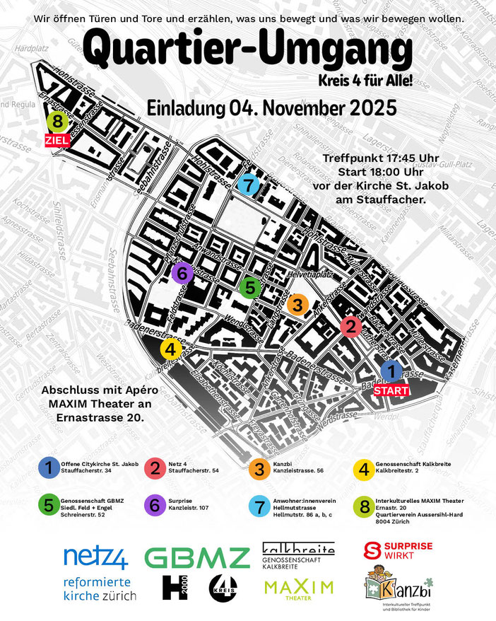 Zusammen mit anderen Quartier-Organisationen laden wir euch alle zu unserem Spaziergang ein!