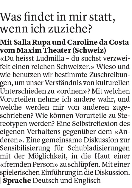 «Du heisst Ludmilla und suchst sicher verzweifelt einen reichen Schweizer». Lasst uns entschubladisieren! Das MAXIM Theater am Stammtisch am Theaterspektakel.