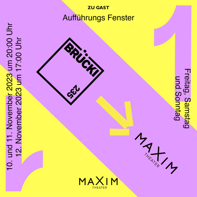 Vom 10. bis 12. November zieht Brücki 235, Zürichs neuer selbstverwalteter Raum für Tanz und Theater, ins MAXIM Theater im Kreis 4 ein. Das MAXIM wird über drei Abende zum Labor für künstlerische Experimente und kreative Vielfalt. Acht lokale Künstler*innen und Gruppen präsentieren diesmal im Rahmen des ersten Aufführungsfensters ein eindrucksvolles Programm aus Tanz, Theater und Performance.