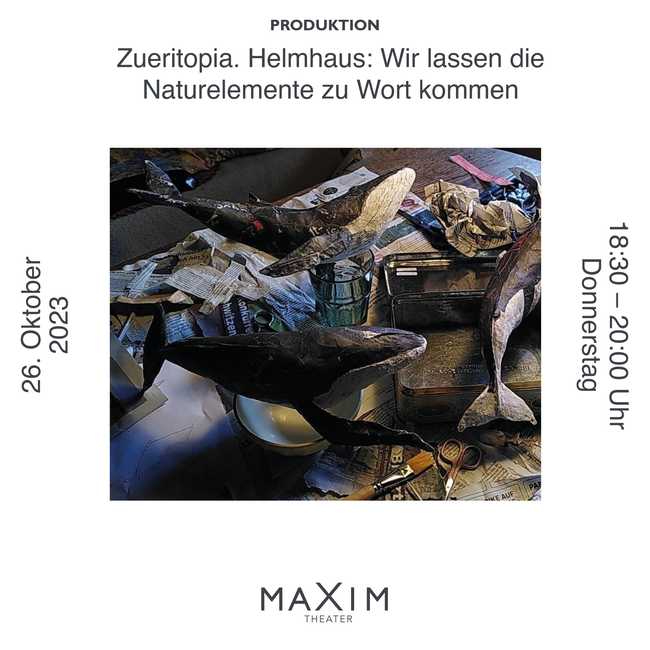 Naturelemente kommunizieren in einer eigenen Sprache. Können Menschen lernen, diese zu verstehen? Unter anderem mit dieser Frage beschäftigt sich die neue Produktion Zueritopia des Zürcher Maxim Theaters, welches eine kurze Szene aus der Inszenierung spielt und anschliessend zum Austausch einlädt.