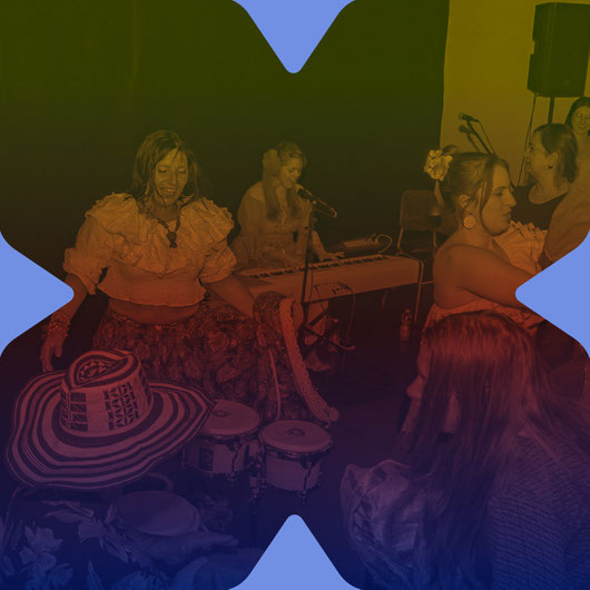 6 Stunden Musik, Tanz und Kolumbianische Literatur mit verschiedenen Ausstellungs- und Übungseinheiten.